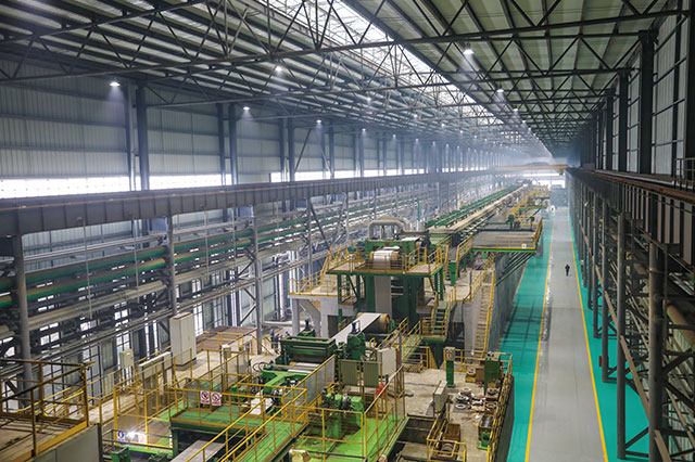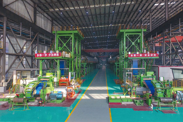 公司擁有1420酸洗冷軋聯(lián)合機(jī)組(PL-TCM)一套,機(jī)械由中國(guó)一重及中冶南方共同設(shè)計(jì)制造,電氣采用上海寶信軟件自動(dòng)化控制系統(tǒng),機(jī)組設(shè)備配置合理,整體裝備達(dá)到國(guó)內(nèi)一流水平。機(jī)械設(shè)備涵蓋激光焊接設(shè)備、噴射紊流式酸洗設(shè)備、高精度雙塔式切邊設(shè)備(SMS)、五機(jī)架竄輥式UCM連軋機(jī)、新型回轉(zhuǎn)式雙卷筒卷取機(jī),軋機(jī)電氣采用秒流量控制系統(tǒng)。